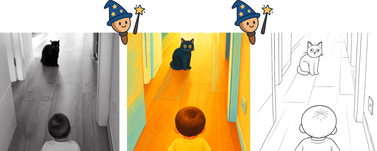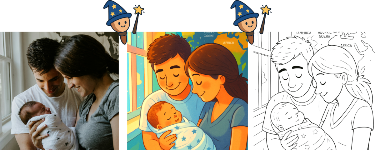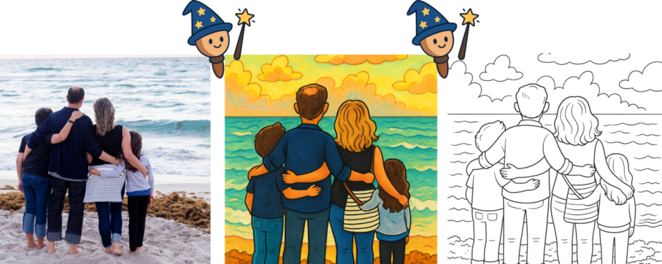 You don’t need to choose templates or browse catalogs. Just upload a special photo and we’ll automatically turn it into a magical coloring illustration.